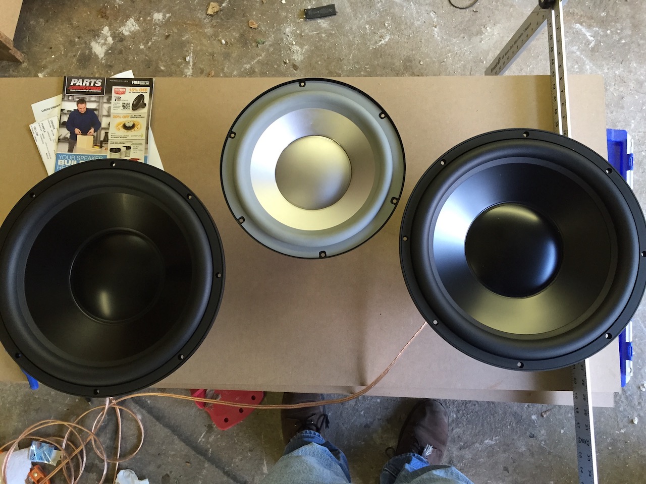 Comparing the old burnt out 12" Infinity driver to the new 15" Daytons.