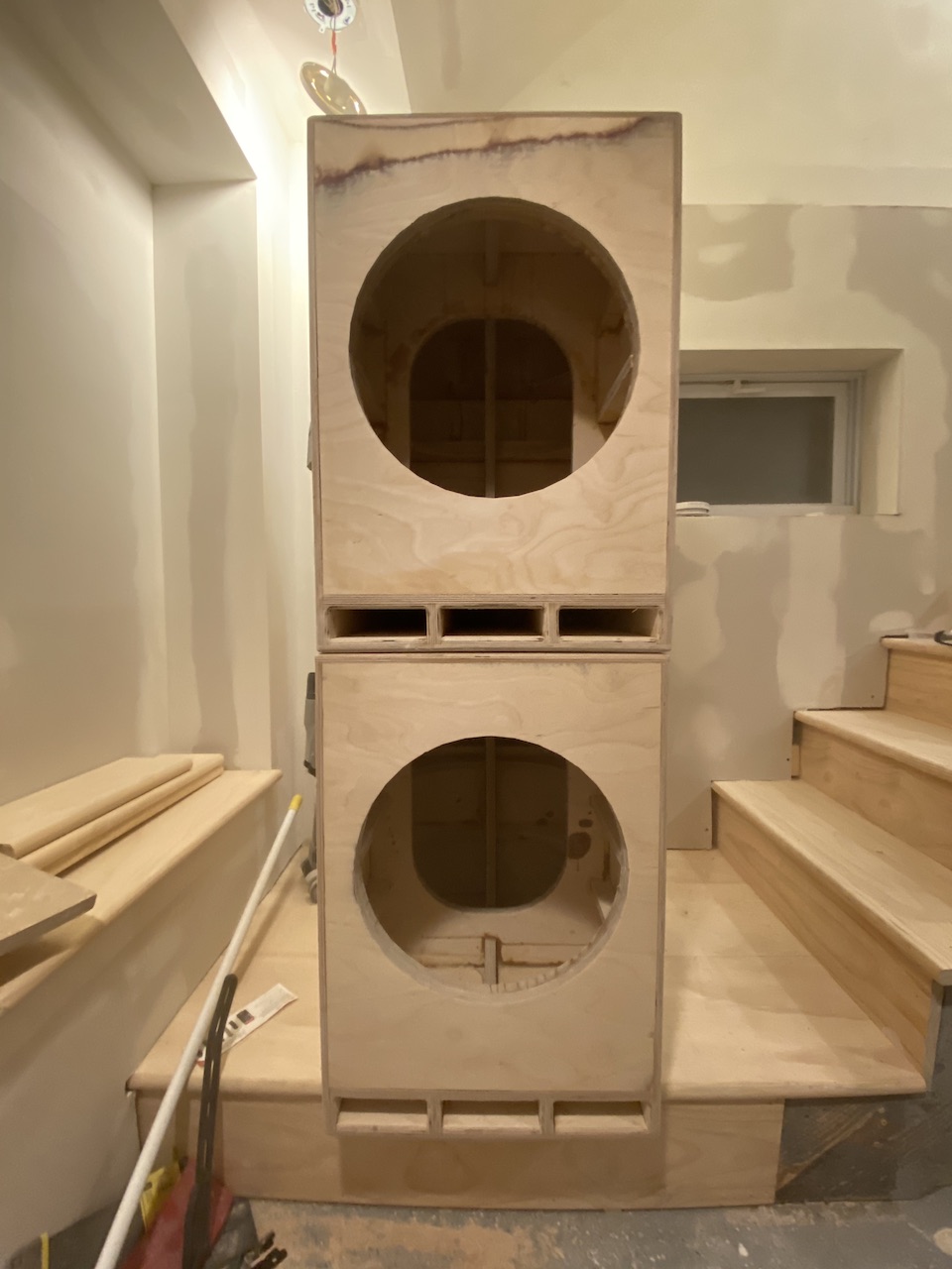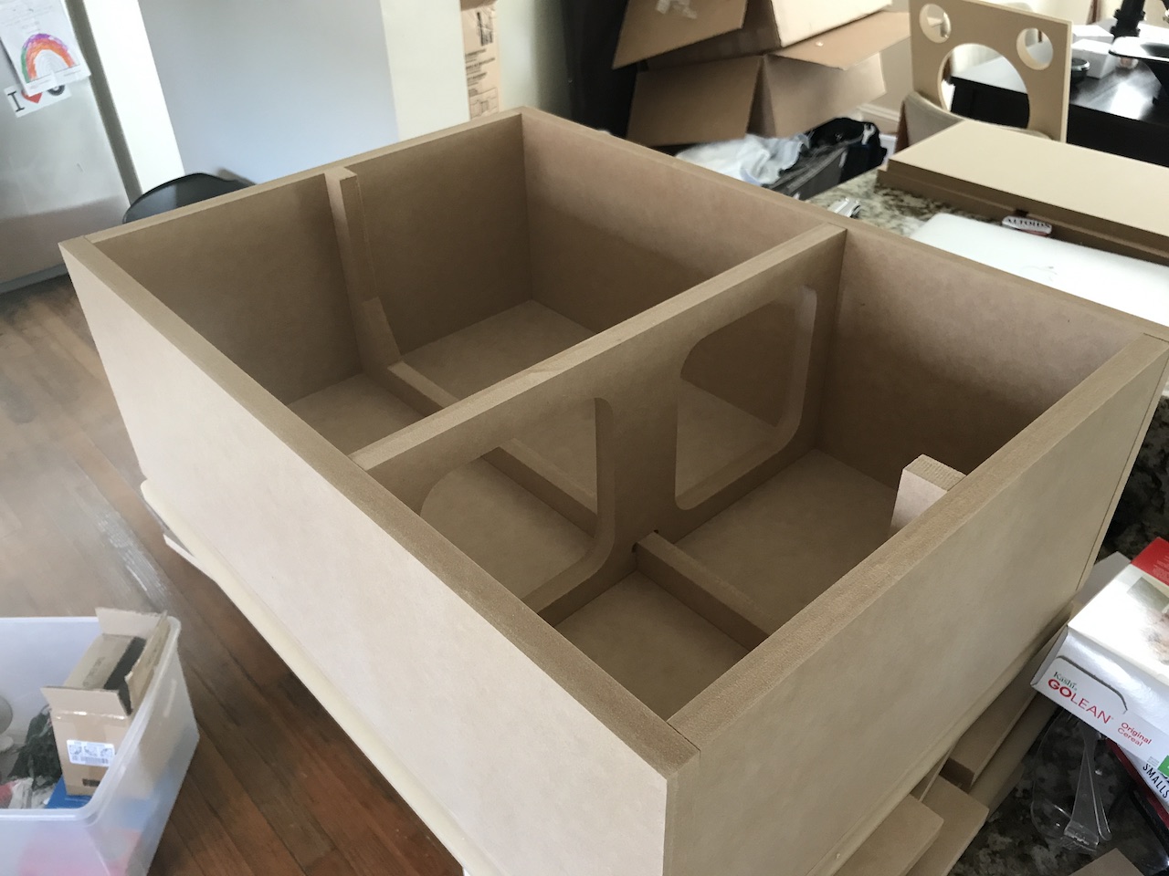 The finished subwoofer cabinets felt super strong and knocking the cabinets with your hand it feels like you're practically just hitting a rock. Once installed in my theater the total 4 subwoofers have provided all the bass I could ever want.