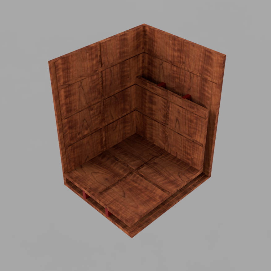 A view with everything in place. The nice wood texture is just for show since it'll all be painted black.