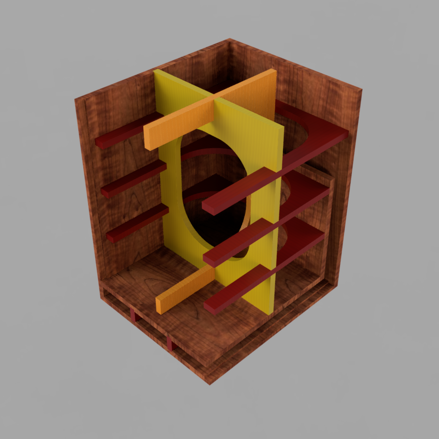 A view with the braces, 5 interlocking pieces that provide a ton of strength to help the cabinet from resonating.
